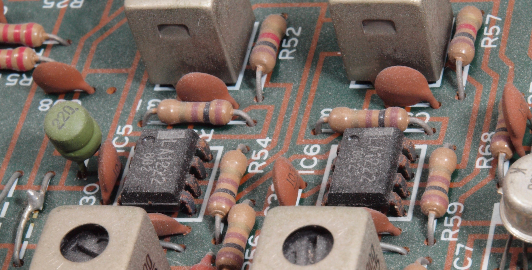 A52. 点検中 IF基板の足黒ICと足黒TR(トランジスター)−2。