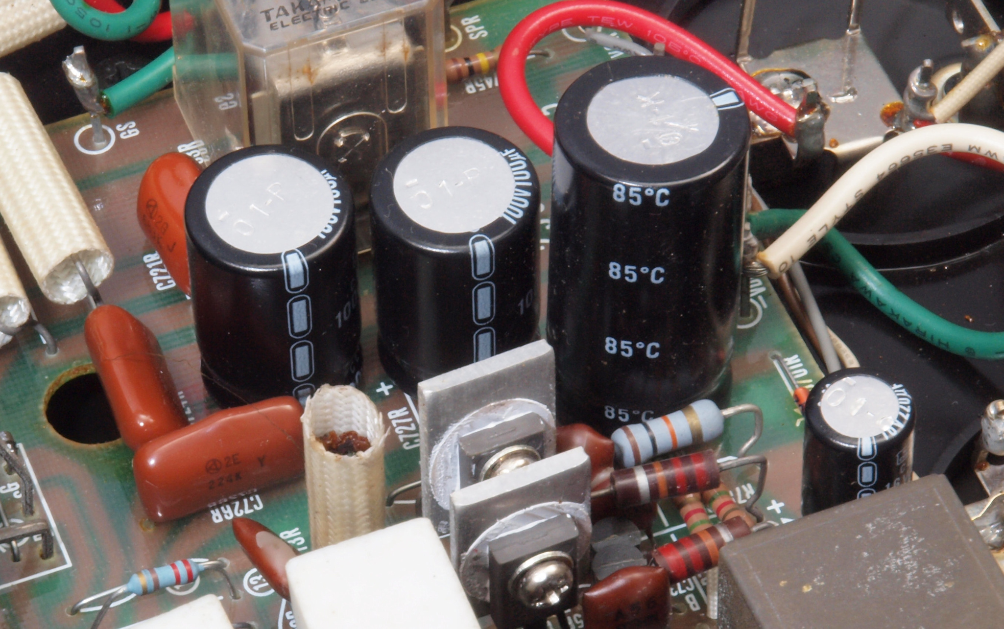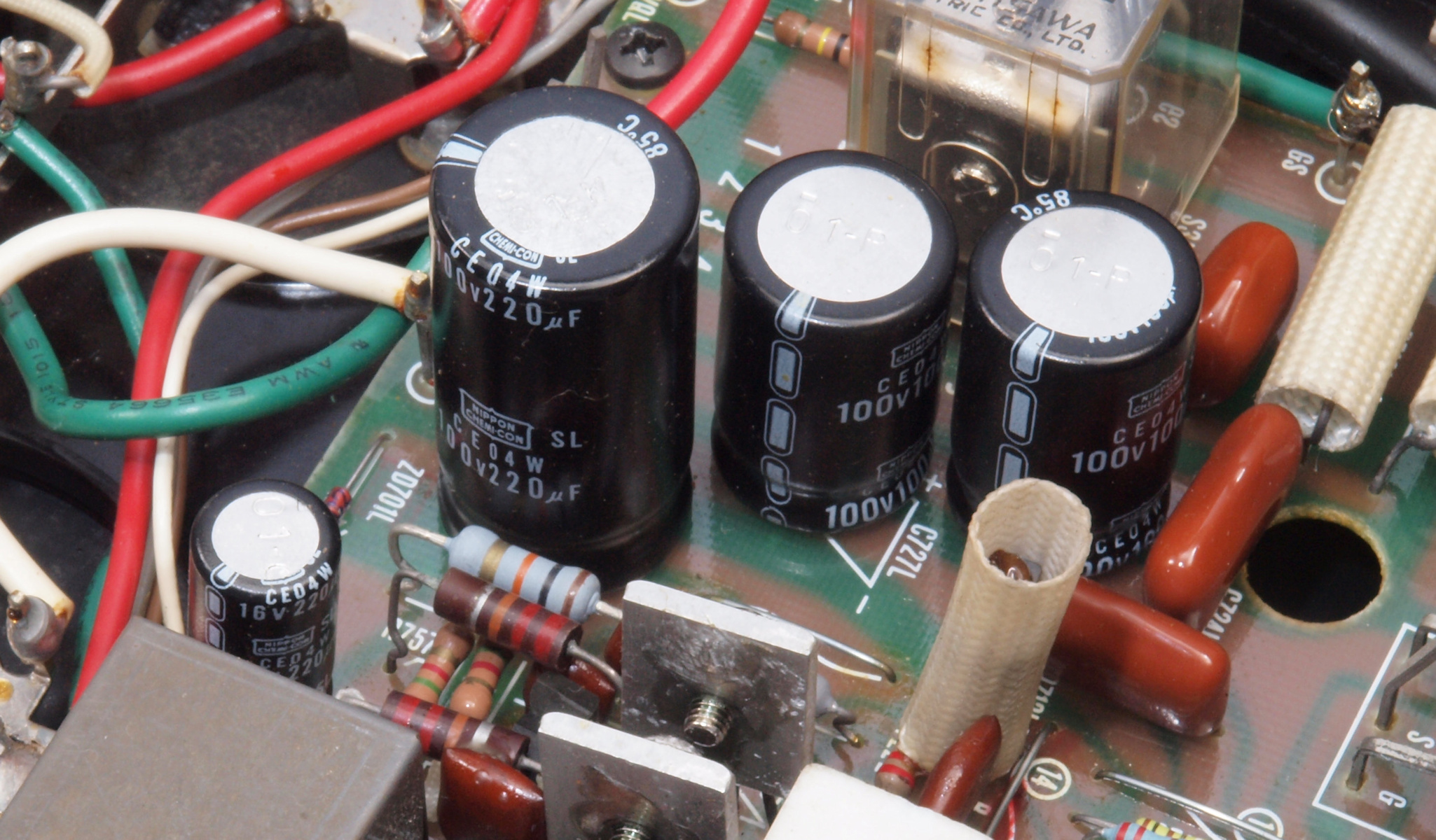 | A52. 点検中 電解コンデンサー外観比較、220μ/100V |