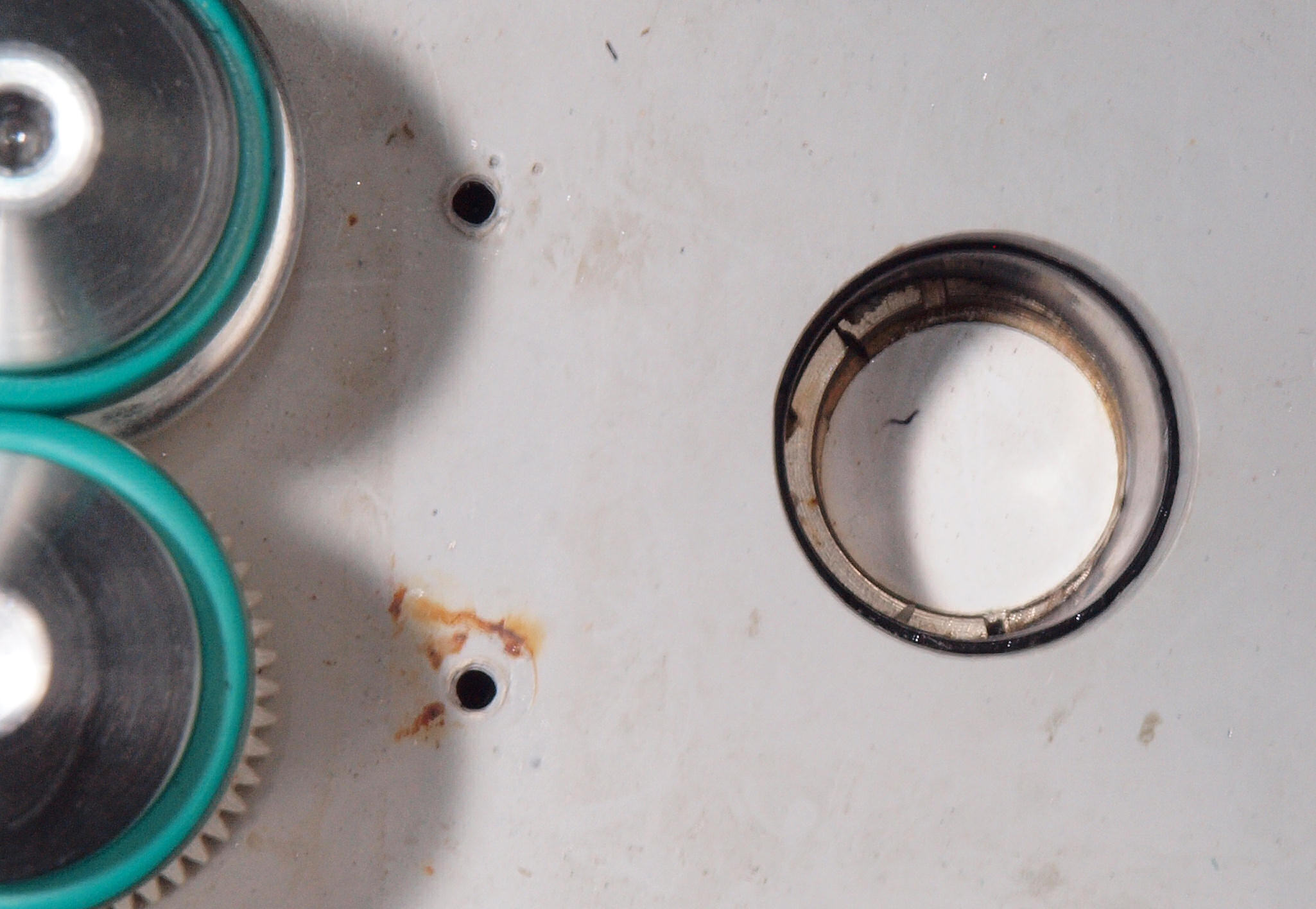 | A41. 点検中 洗浄機構見る。左側穴の所が超音波振動子。 | ||||||||||||||||||