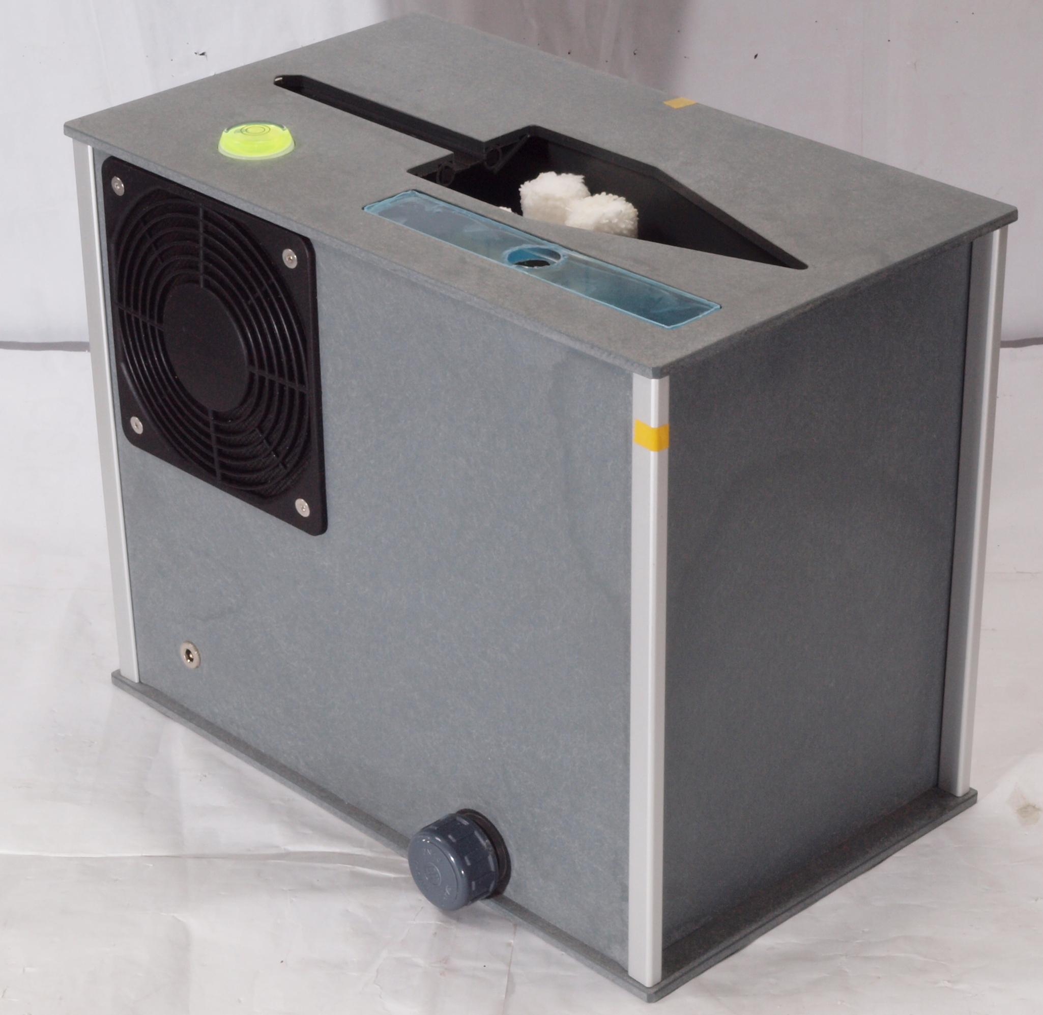 | E3. 洗浄終わり乾燥開始。洗浄終了後、洗浄液が下降しタンク内に収納 。 ブラシが止まり、ファンが回り乾燥開始(レコードは低速にて回転持続中) |