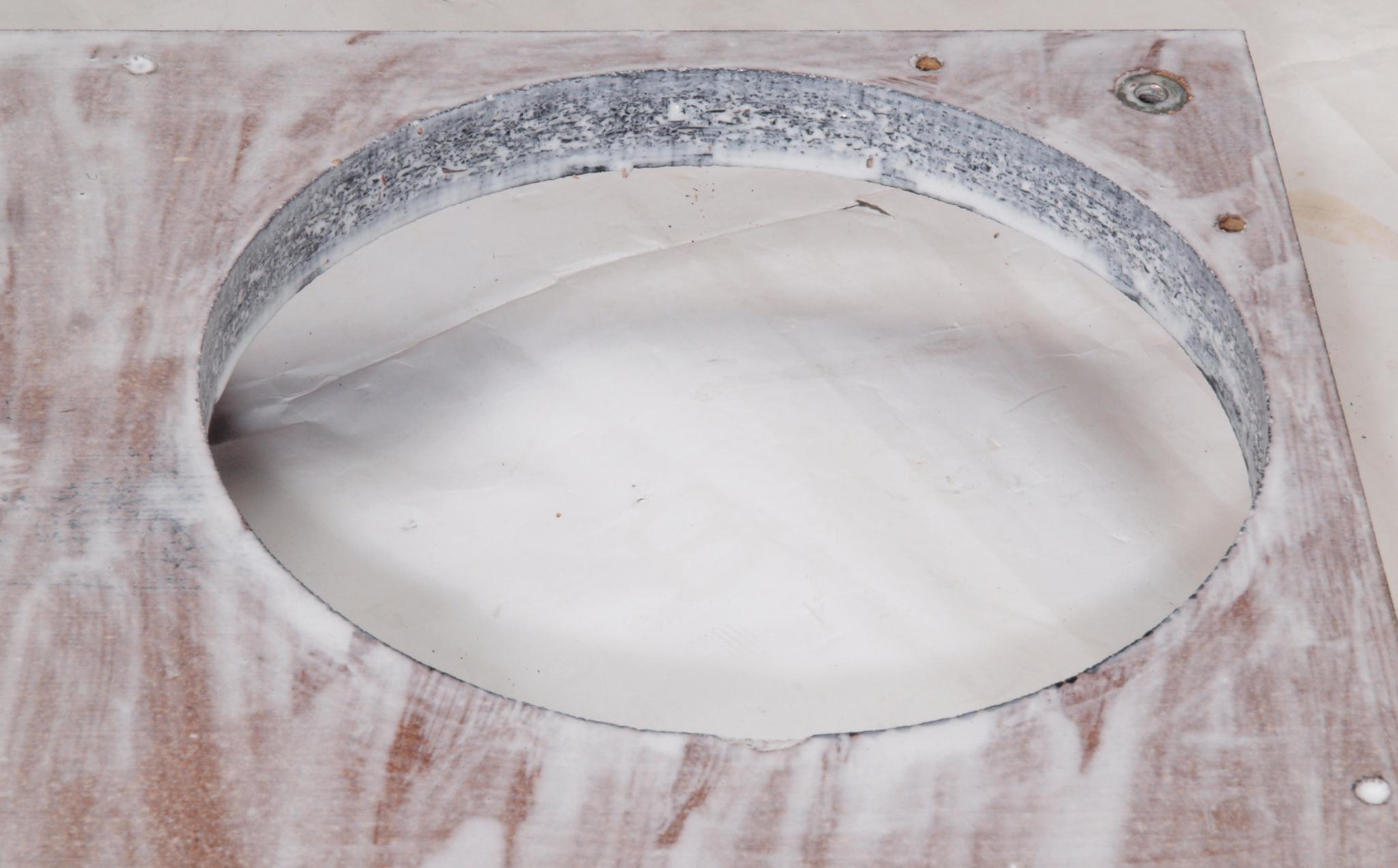W35. 修理中 操作部取付穴、反対側。 圧縮材にボンドを染みこませる。