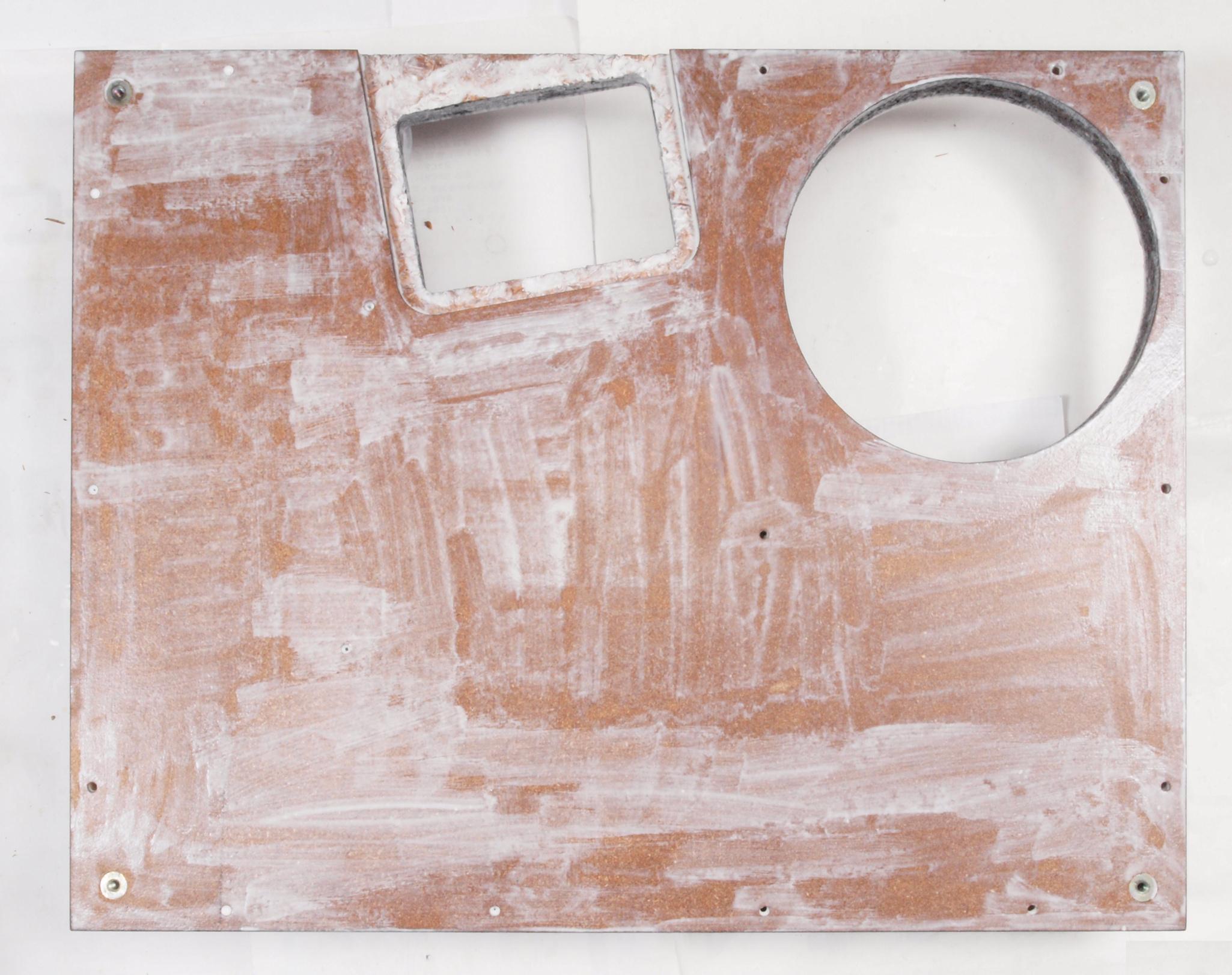W76. 修理前 電源ソケット、端子板取付け穴、反対側。 乾燥後さらにペンキを塗る。