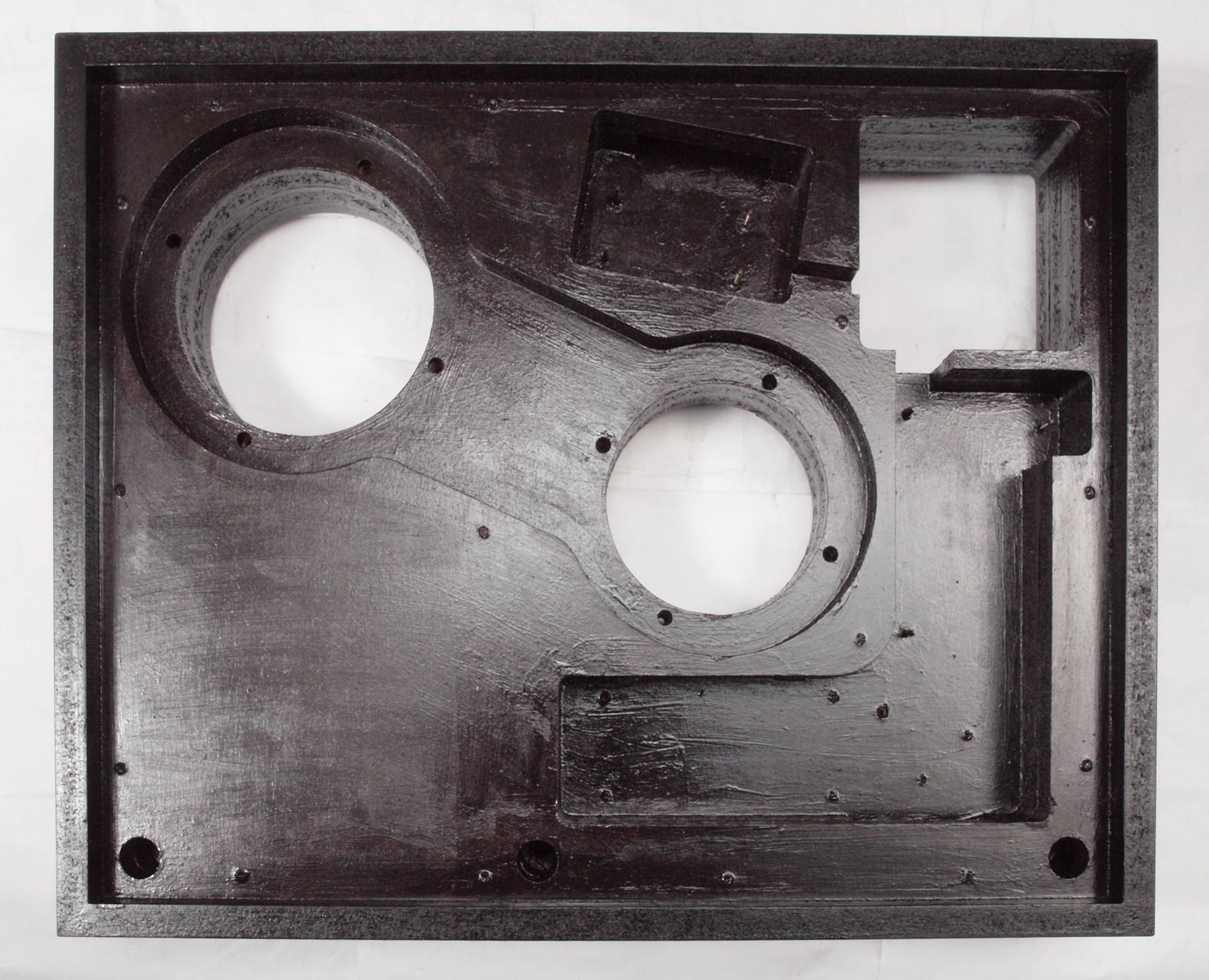 W26. 修理後 モーター取付穴、タンテーブル軸受取付穴、反対側。 更にペンキを塗る。