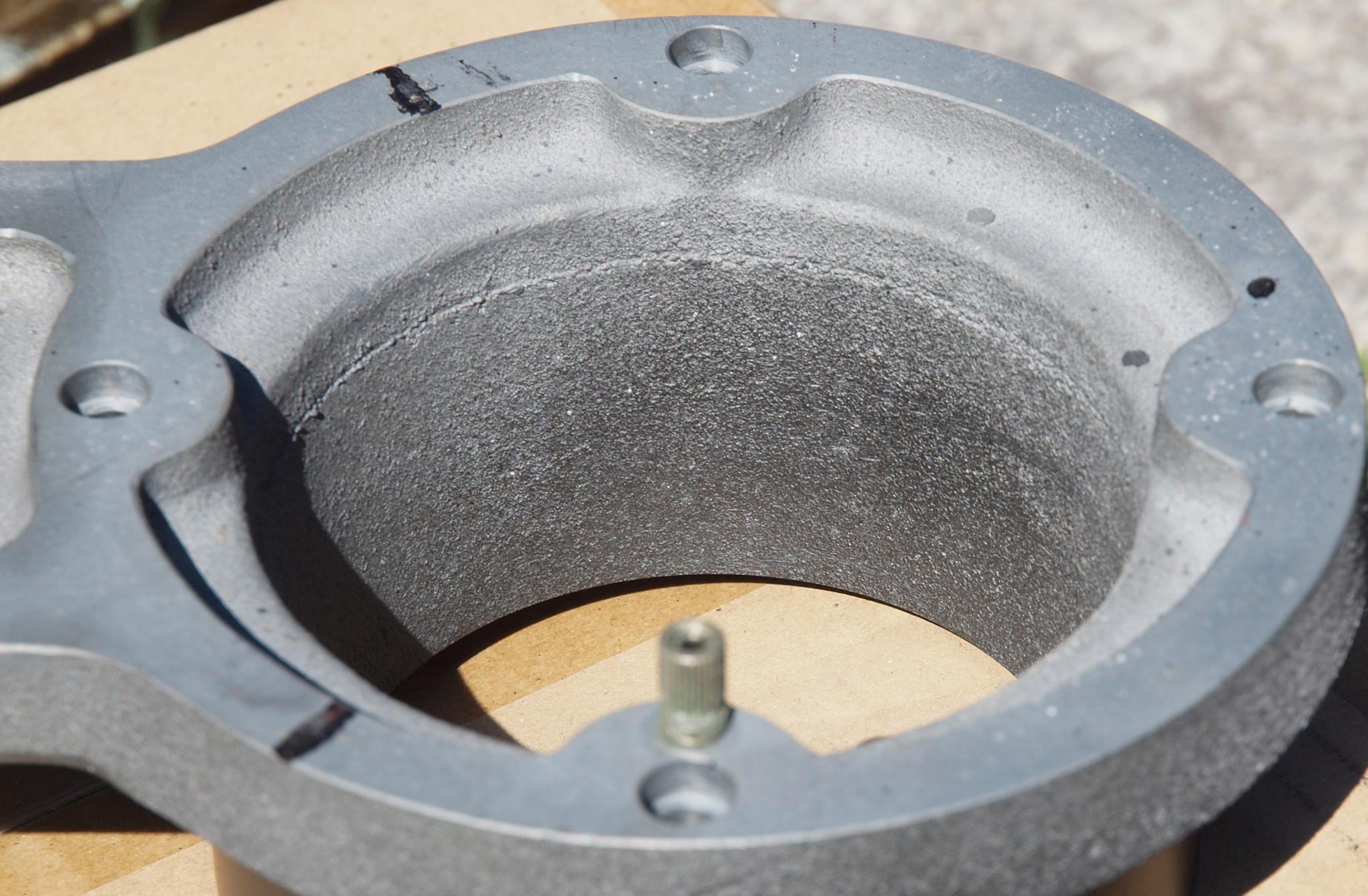 WB4. 修理前 下蓋のアーム取り付穴反対側。