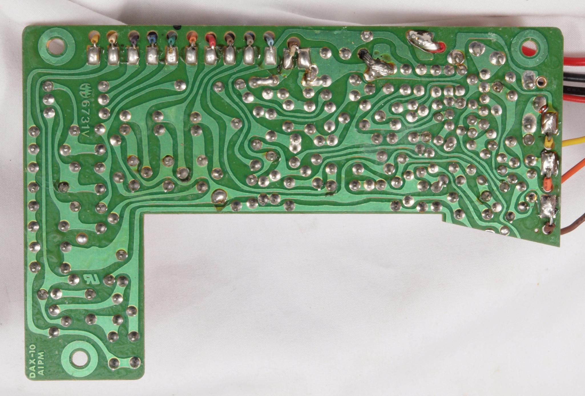 C93. 修理(半田補正)後 表示部及び 33/45切り換SW基板裏。